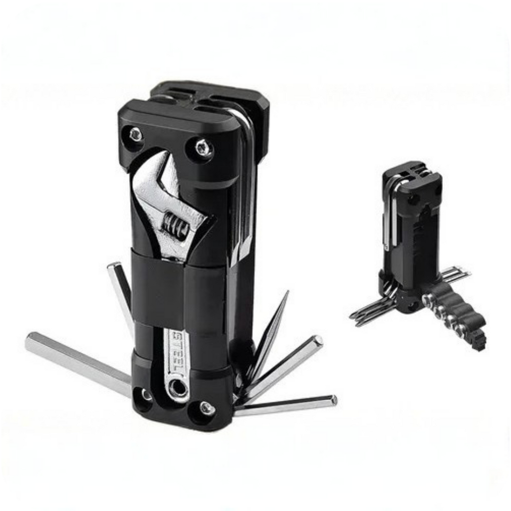 • Funciones: Llave ajustable, puntas Allen, destornilladores y más