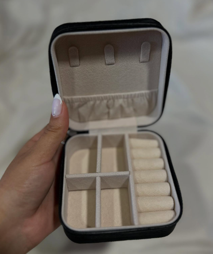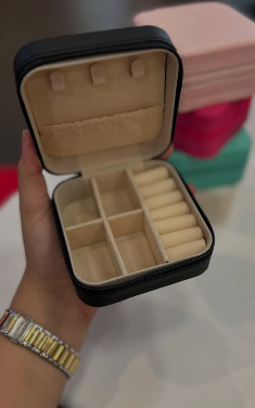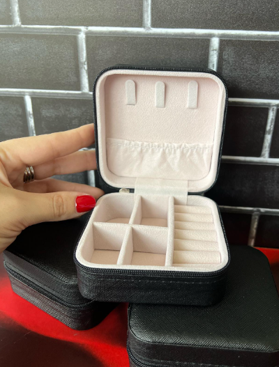 • Interior con compartimientos separados, ideal para collares, anillos, aretes y más.